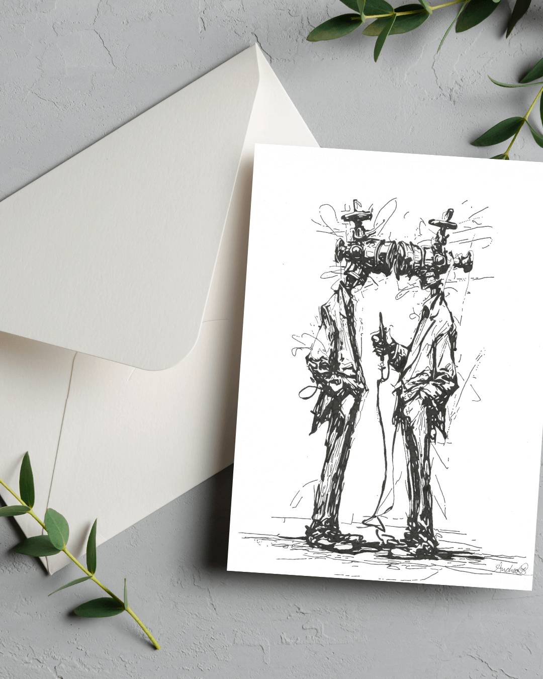 A hand-drawn 8×10 character, just for you, mailed each month