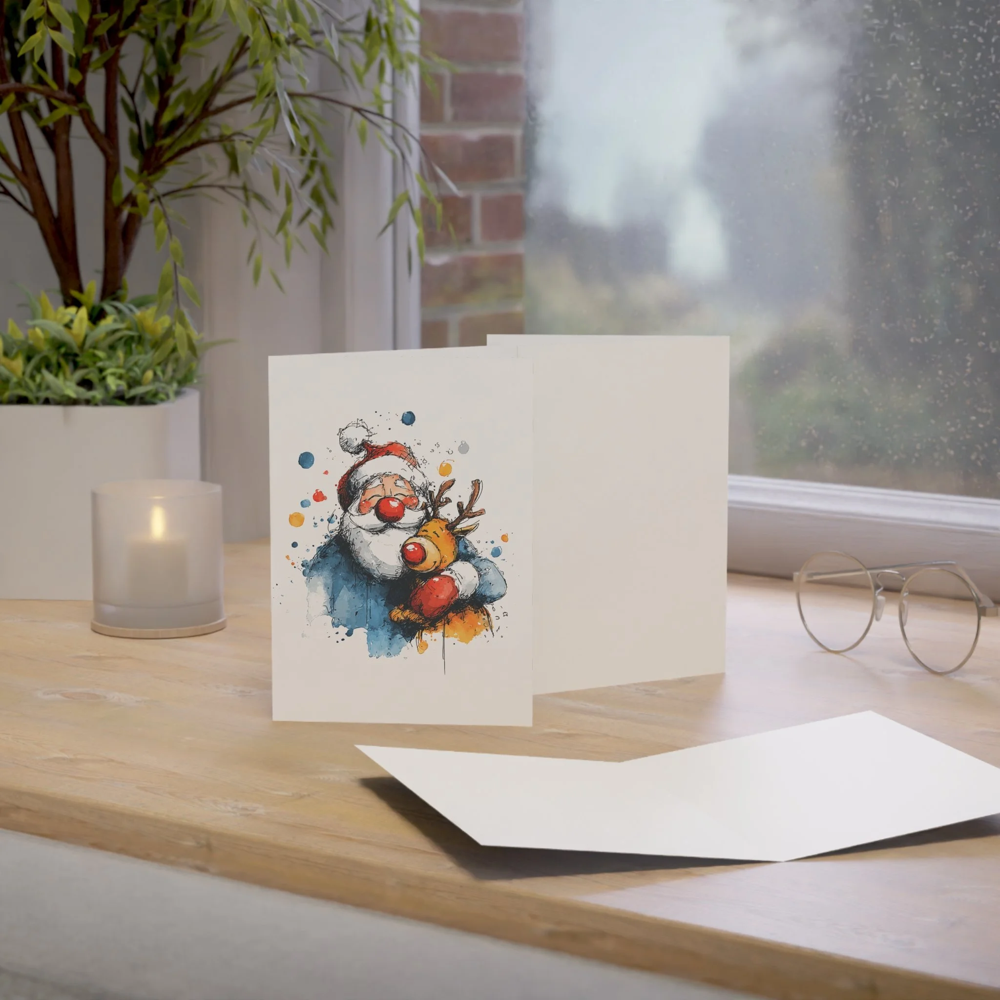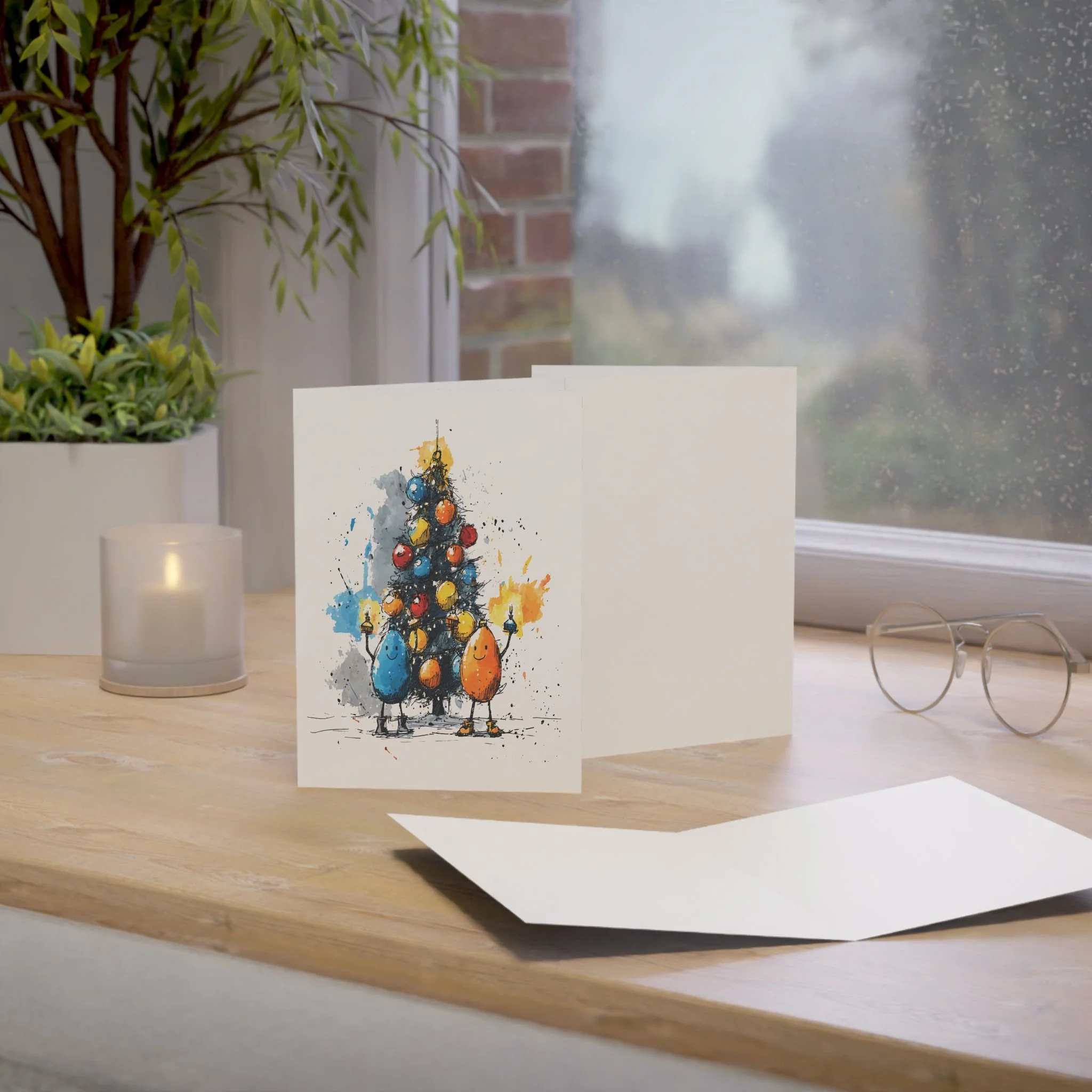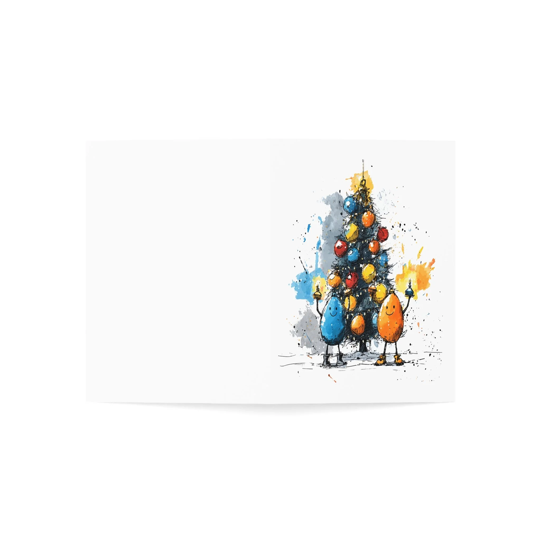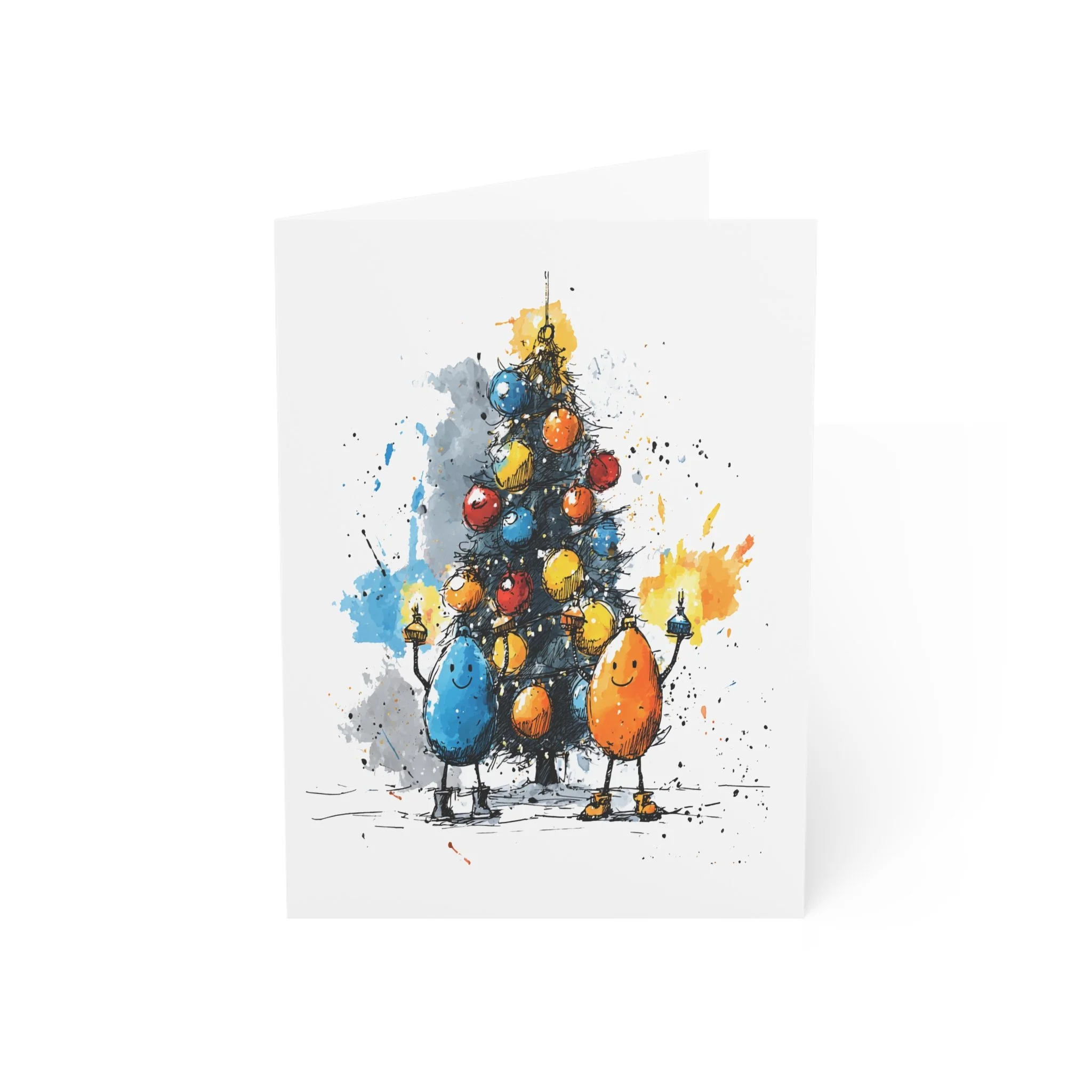 A small bundle of joy you can hold and send — these greeting cards capture a playful, watercolor holiday scene that feels handmade and warm. The front shows two bright, rounded characters decorating a splashed, colorful Christmas tree; inside is left blank so your words take center stage. The 270gsm paper and choice of finishes give each card a substantial, matte feel that lets the lively inks pop. Comes with matching envelopes. Send a note that looks like it was painted just for them — cheerful, quirky, and full of good cheer for winter gatherings or cozy mail-day surprises.